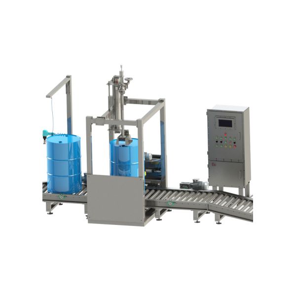 自動灌裝機主要由灌裝噴槍裝置、防爆控制柜、稱重儀表:西門子PLC、觸摸屏、自動找口裝置、秤臺含進口稱重傳感器、氣動元件采用進口氣缸、防爆電磁閥,進口球閥,動力輸送輥道,機架不銹鋼與碳鋼制作、自動旋蓋、自動分桶裝置等組成。